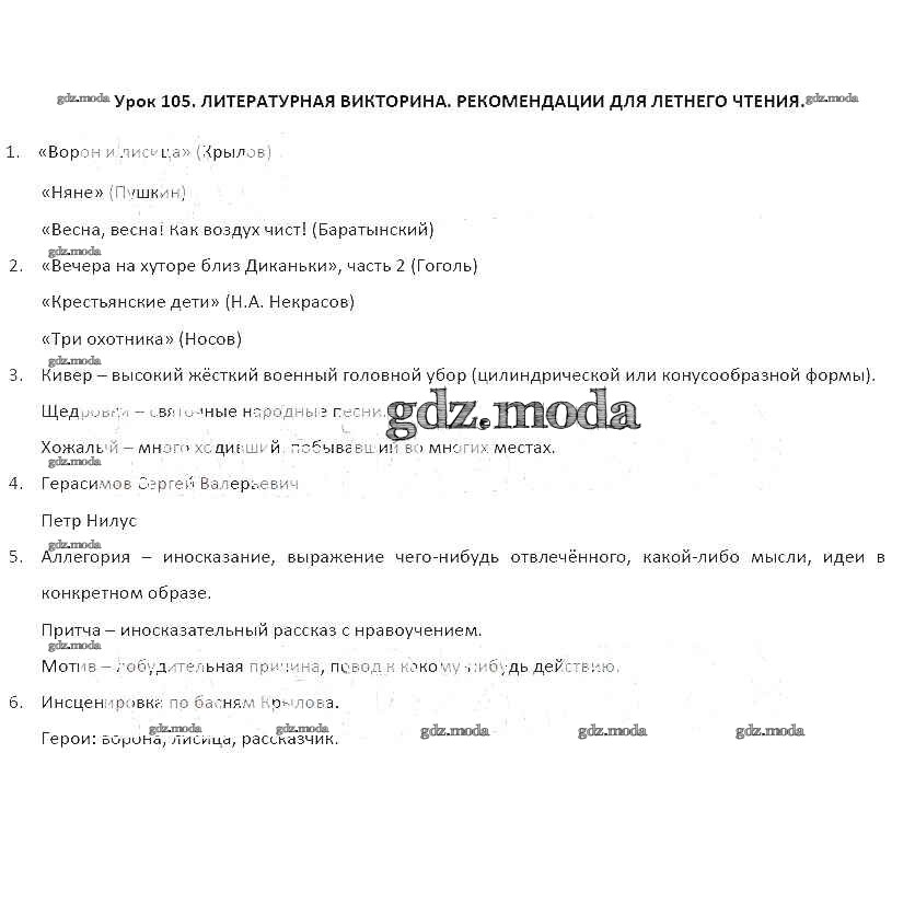ГДЗ решение к заданию № 105 Литература 5 класс рабочая тетрадь Соловьева Ф.Е. Русское слово 2016 ФГОС бесплатно на гдз.мода!