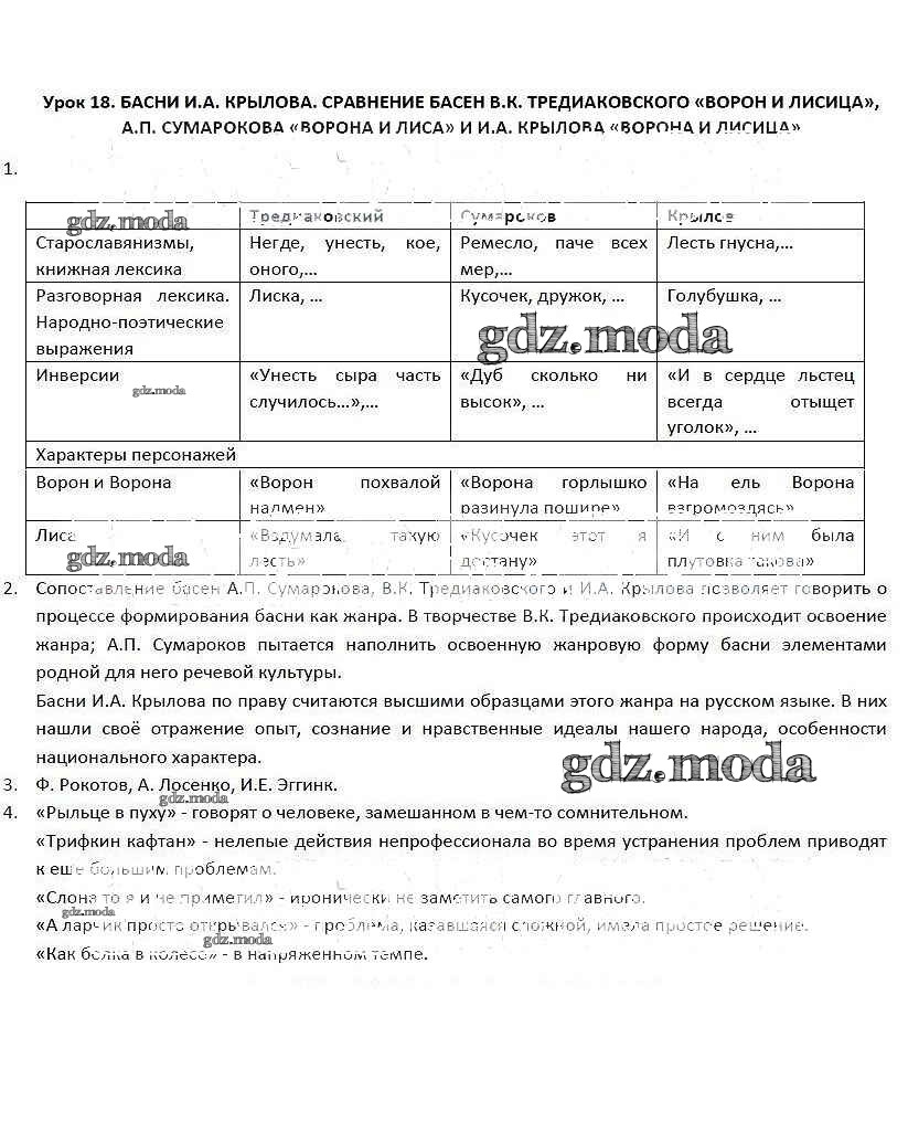 ГДЗ решение к заданию № 18 Литература 5 класс рабочая тетрадь Соловьева Ф.Е. Русское слово 2016 ФГОС бесплатно на гдз.мода!