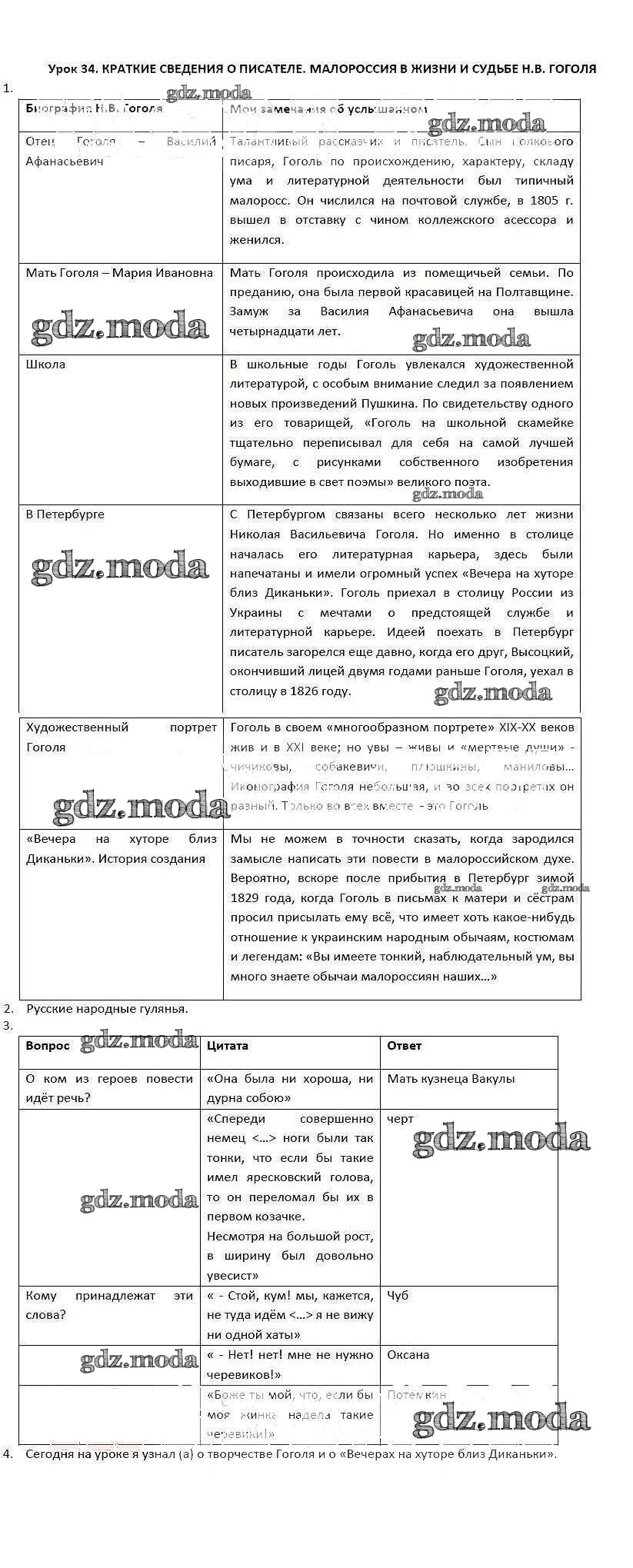ГДЗ решение к заданию № 34 Литература 5 класс рабочая тетрадь Соловьева Ф.Е. Русское слово 2016 ФГОС бесплатно на гдз.мода!