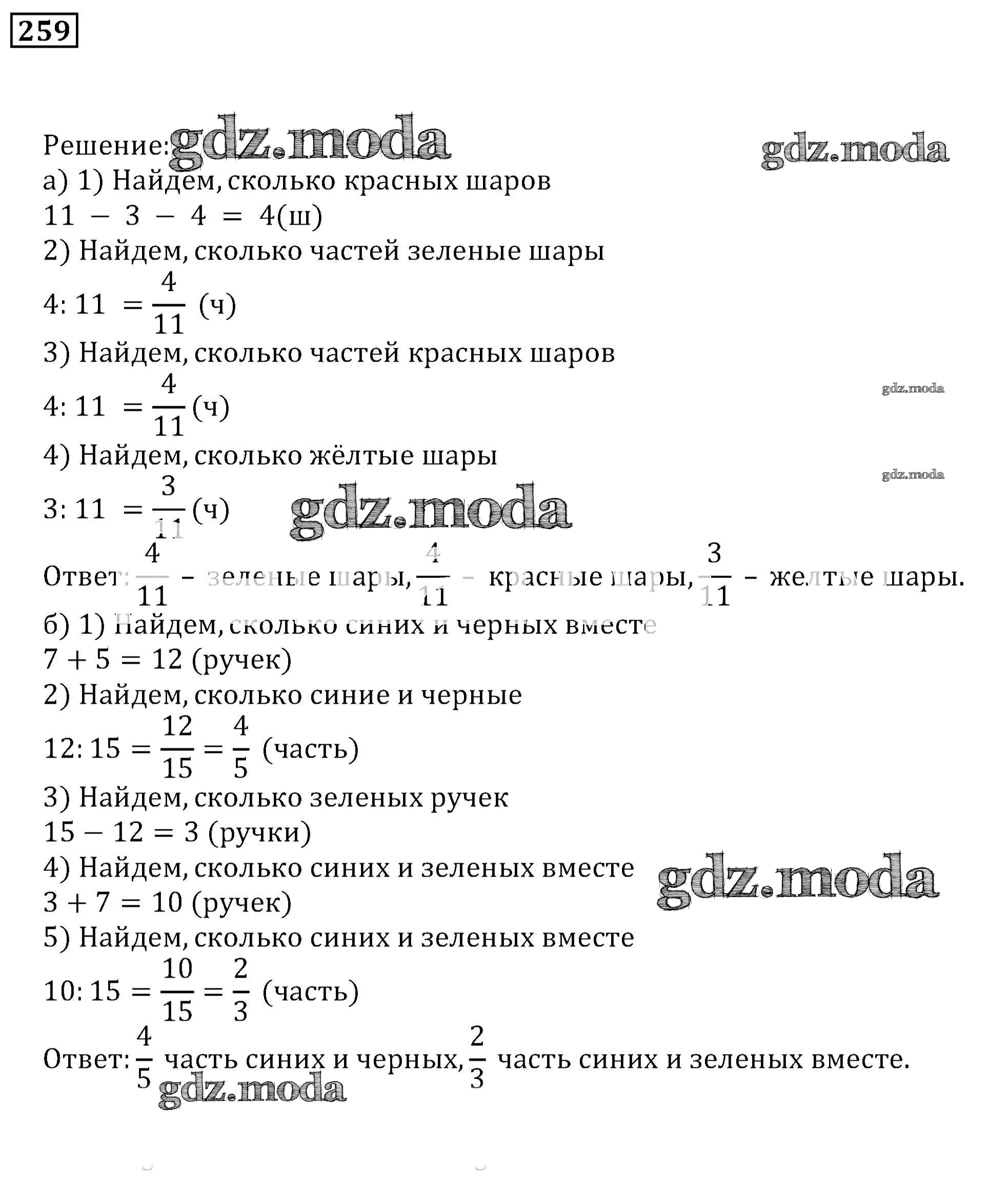 ГДЗ решение к заданию № 259 Математика 5 класс задачник Бунимович Просвещение 2015 Часть ФГОС бесплатно на гдз.мода!