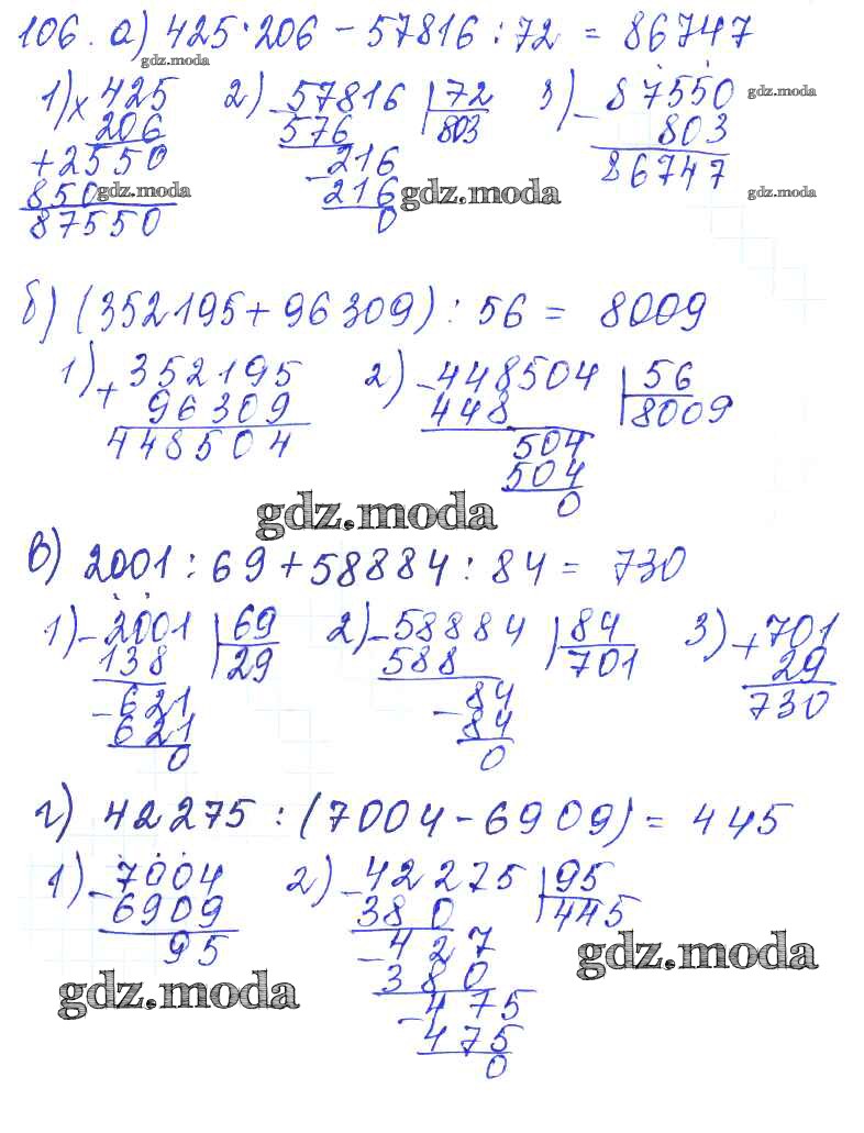 ГДЗ решение к заданию № 106 Математика 5 класс Дидактические материалы Чесноков А.С. Академкнига 2014 ФГОС бесплатно на гдз.мода!