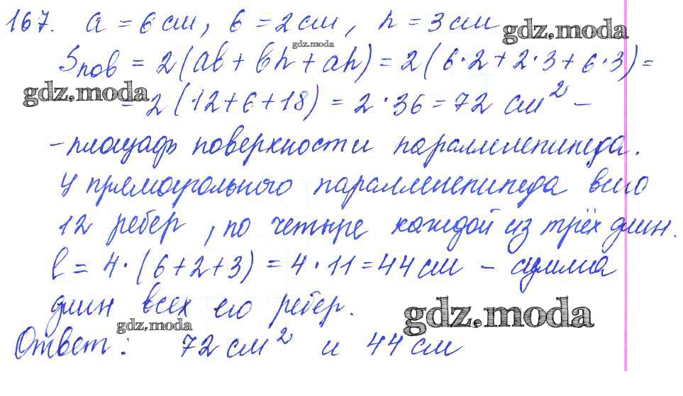 ГДЗ решение к заданию № 167 Математика 5 класс Дидактические материалы Чесноков А.С. Академкнига 2014 ФГОС бесплатно на гдз.мода!