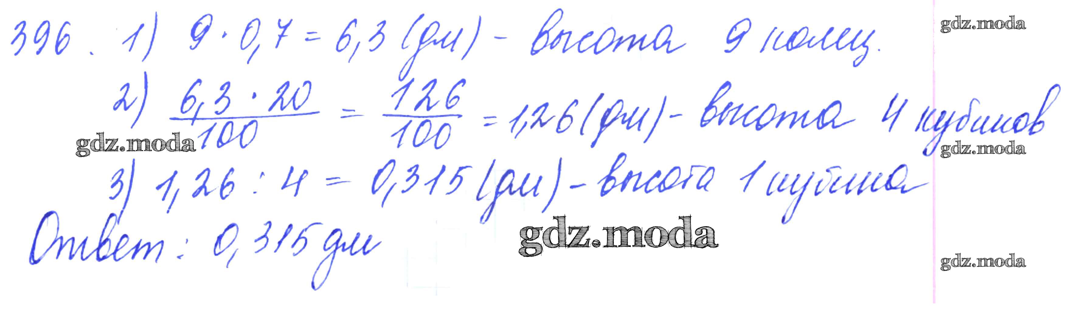 ОТВЕТ на задание № 396 Дидактические материалы по Математике 5 класс Чесноков