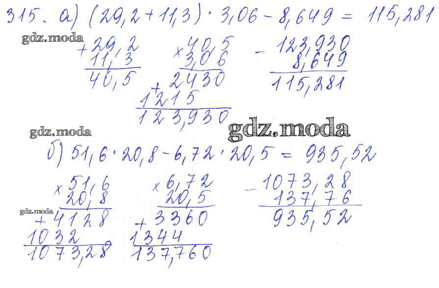 ГДЗ решение к заданию № 315 Математика 5 класс Дидактические материалы Чесноков А.С. Академкнига 2014 ФГОС бесплатно на гдз.мода!