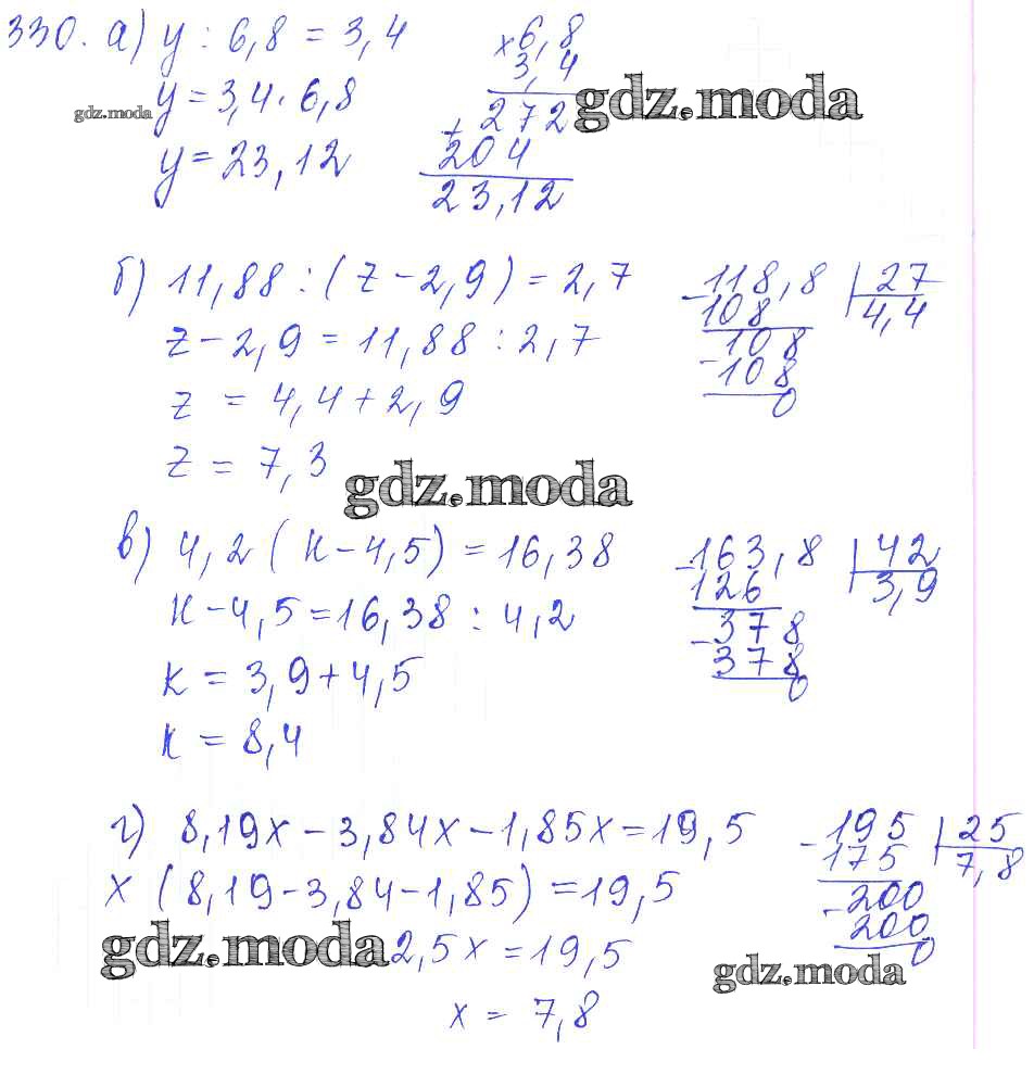 ОТВЕТ на задание № 330 Дидактические материалы по Математике 5 класс Чесноков
