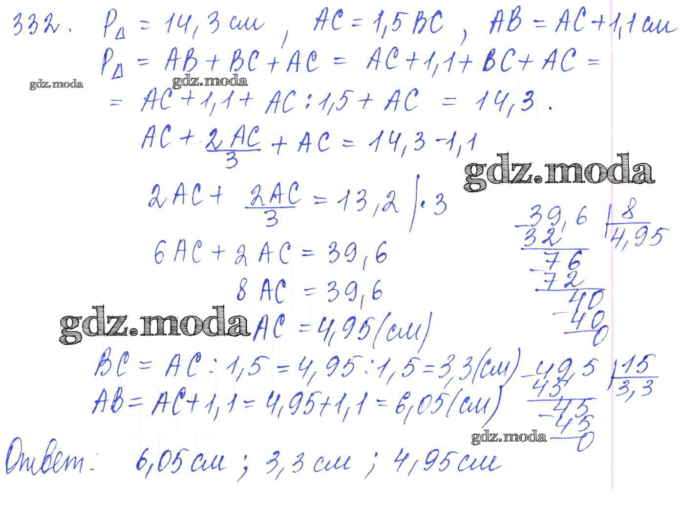 ОТВЕТ на задание № 332 Дидактические материалы по Математике 5 класс Чесноков
