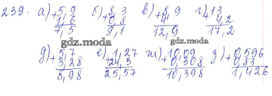 ОТВЕТ на задание № 239 Дидактические материалы по Математике 5 класс Чесноков