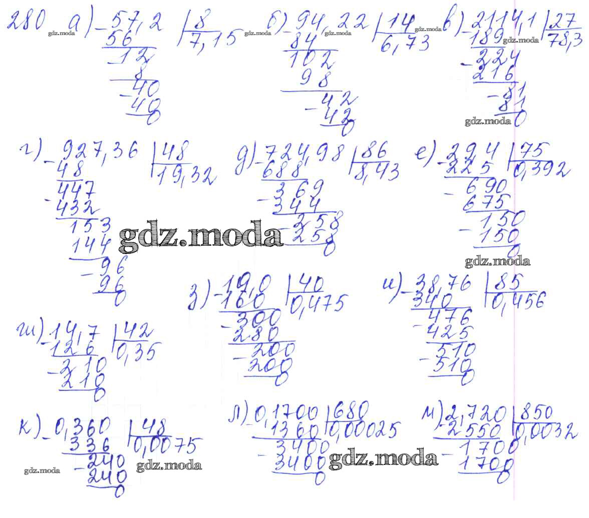 ОТВЕТ на задание № 280 Дидактические материалы по Математике 5 класс Чесноков