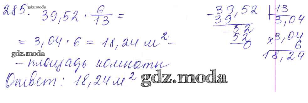 ОТВЕТ на задание № 285 Дидактические материалы по Математике 5 класс Чесноков