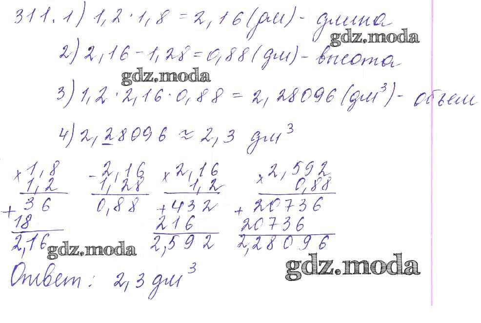 ГДЗ решение к заданию № 311 Математика 5 класс Дидактические материалы Чесноков А.С. Академкнига 2014 ФГОС бесплатно на гдз.мода!