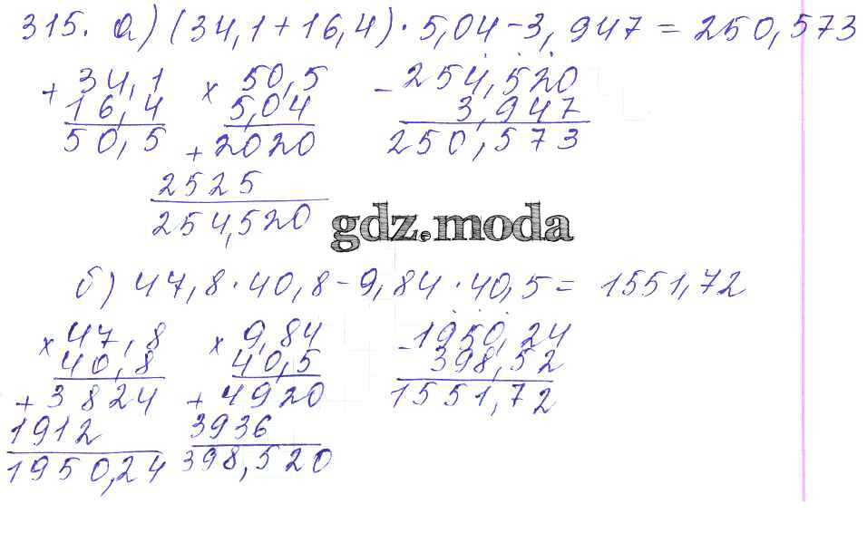 ГДЗ решение к заданию № 315 Математика 5 класс Дидактические материалы Чесноков А.С. Академкнига 2014 ФГОС бесплатно на гдз.мода!