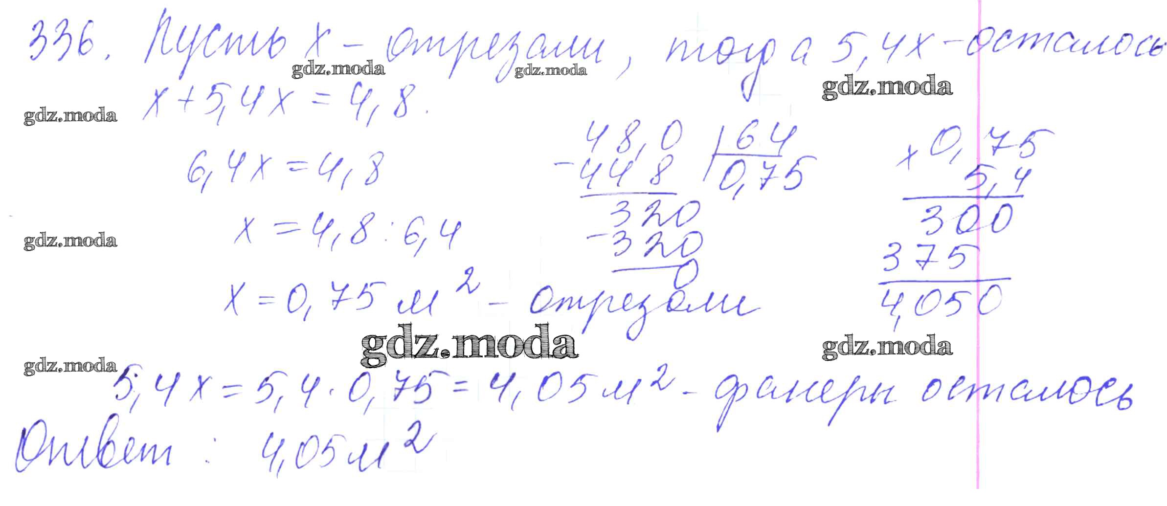 ГДЗ решение к заданию № 336 Математика 5 класс Дидактические материалы Чесноков А.С. Академкнига 2014 ФГОС бесплатно на гдз.мода!