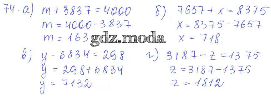 ГДЗ решение к заданию № 74 Математика 5 класс Дидактические материалы Чесноков А.С. Академкнига 2014 ФГОС бесплатно на гдз.мода!