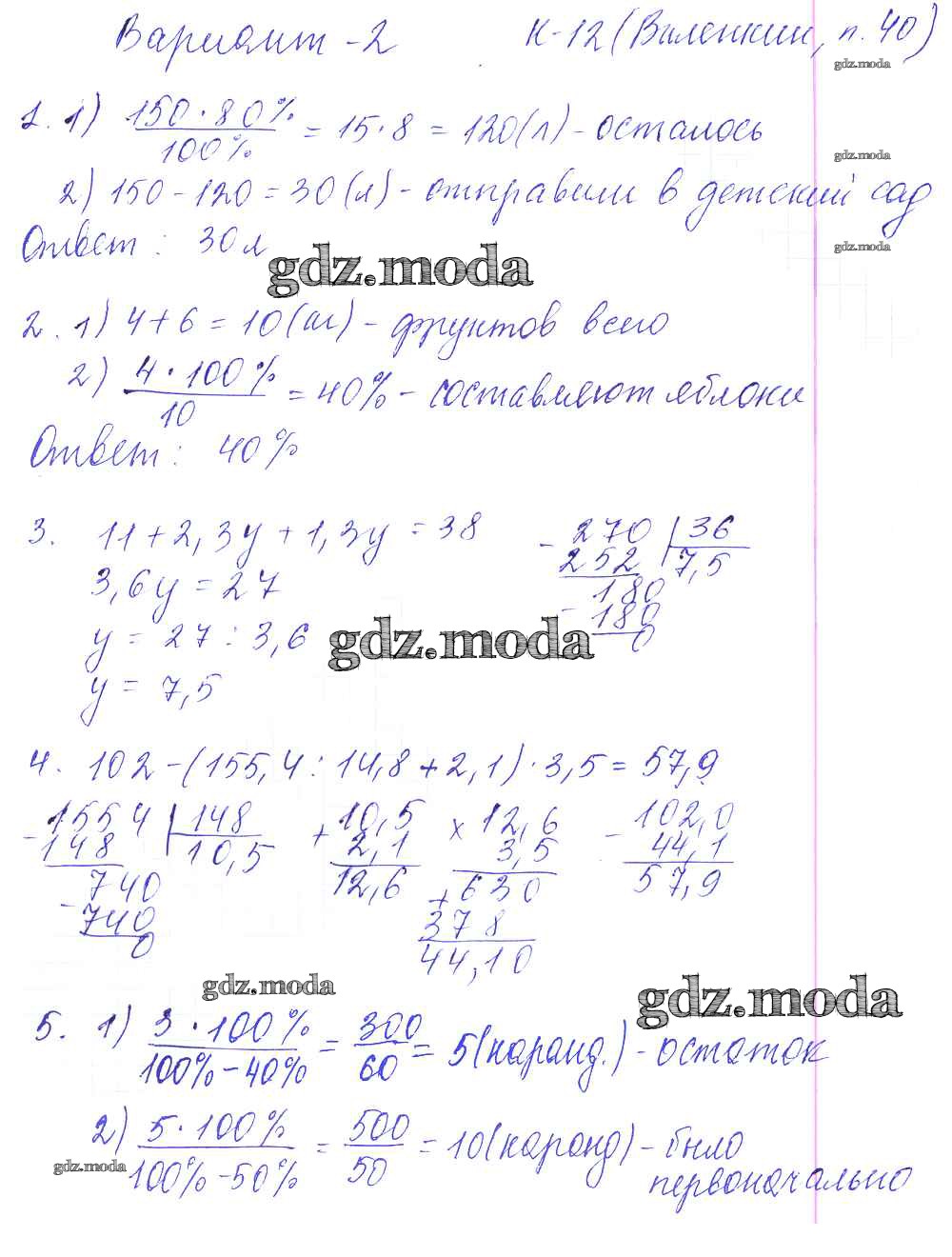 ОТВЕТ на задание № 2 Дидактические материалы по Математике 5 класс Чесноков