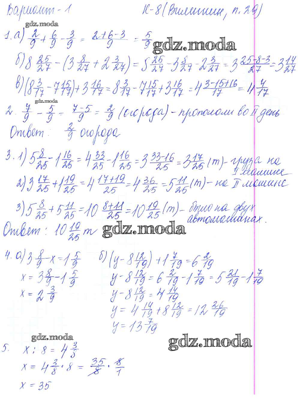 ОТВЕТ на задание № 1 Дидактические материалы по Математике 5 класс Чесноков