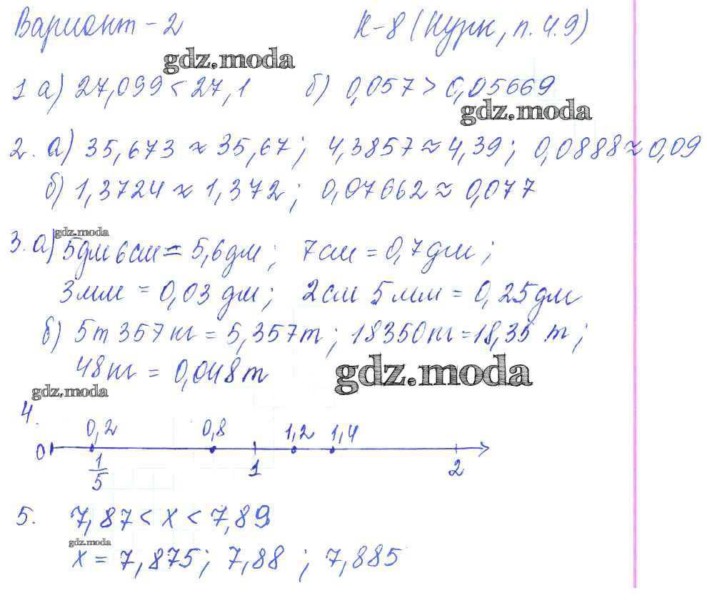 ОТВЕТ на задание № 2 Дидактические материалы по Математике 5 класс Чесноков