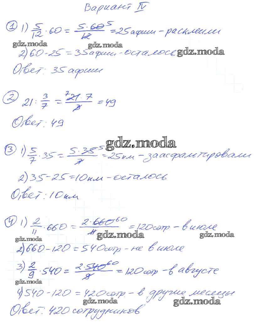 ГДЗ решение к заданию № 4 Математика 5 класс Дидактические материалы Потапов М.К. Просвещение 2017 ФГОС бесплатно на гдз.мода!