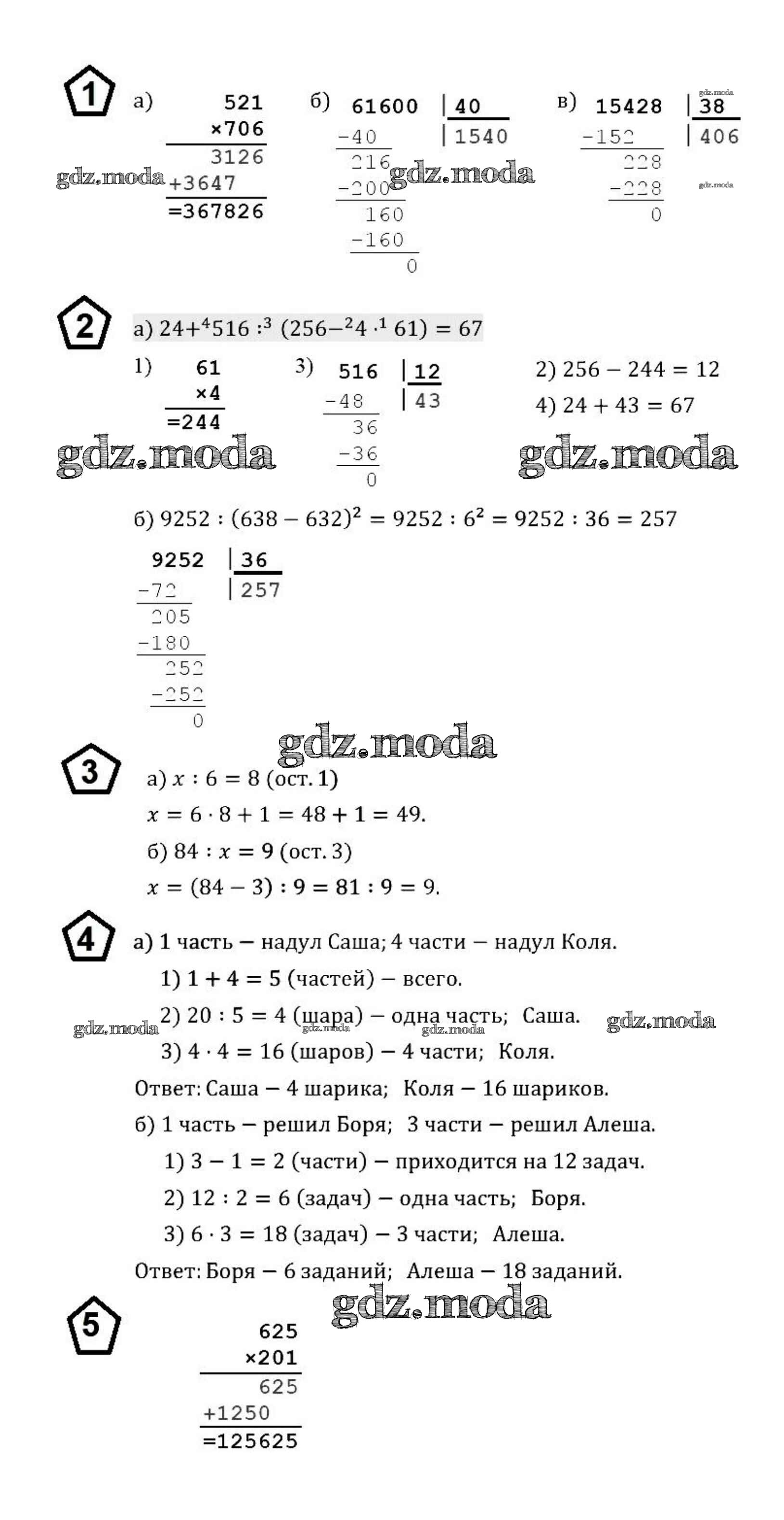 ОТВЕТ на задание № 2 Дидактические материалы по Математике 5 класс Потапов МГУ - школе