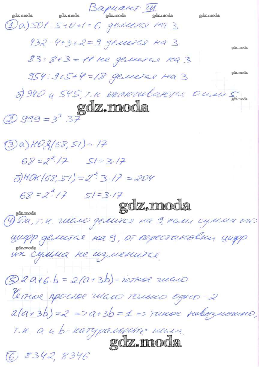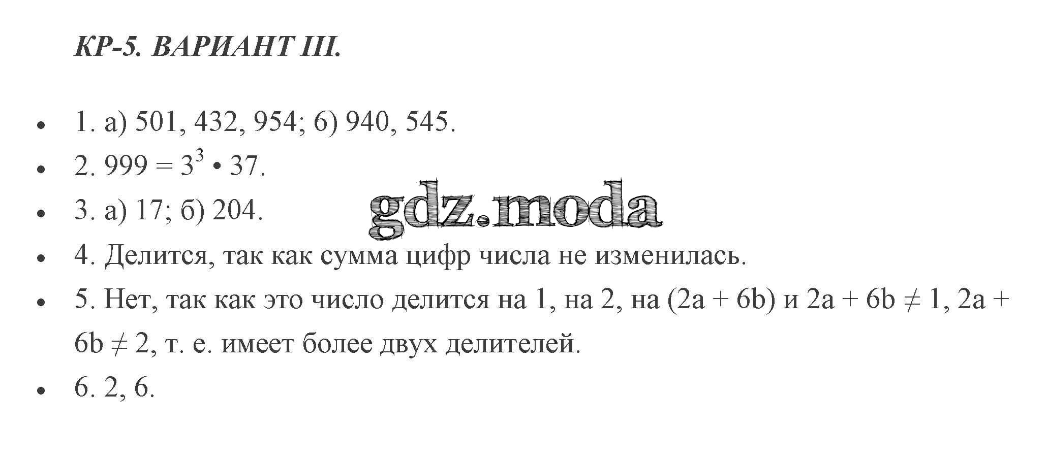 ОТВЕТ на задание № 3 Дидактические материалы по Математике 5 класс Потапов МГУ - школе