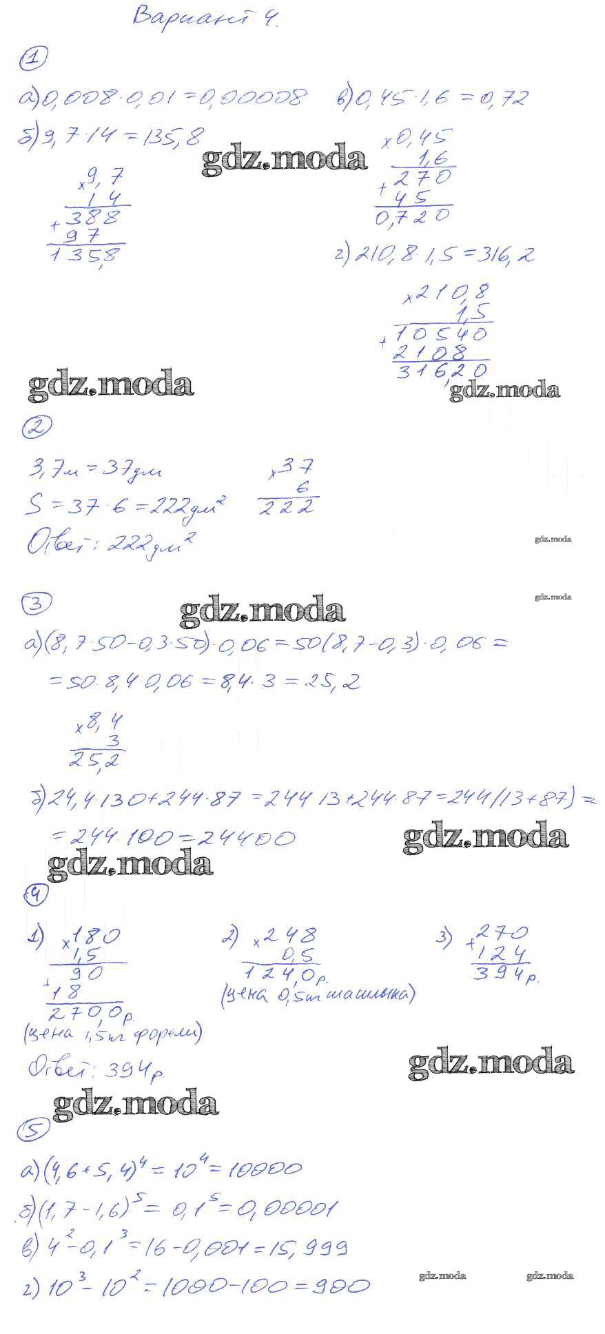 ГДЗ решение к заданию № 4 Математика 5 класс Дидактические материалы Рудницкая В.Н. ( к уч. Зубаревой И.И.) Экзамен 2017 ФГОС бесплатно на гдз.мода!