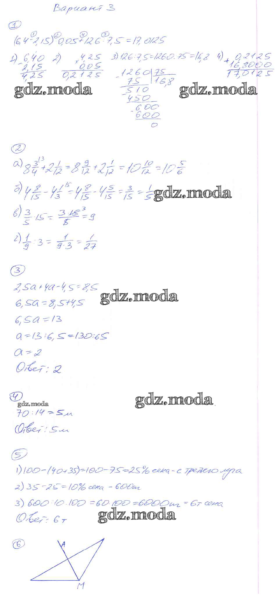 ГДЗ решение к заданию № 3 Математика 5 класс Дидактические материалы Рудницкая В.Н. ( к уч. Зубаревой И.И.) Экзамен 2017 ФГОС бесплатно на гдз.мода!