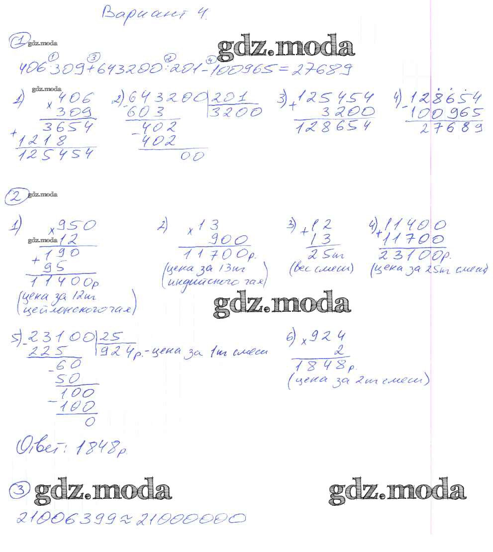 ГДЗ решение к заданию № 4 Математика 5 класс Дидактические материалы Рудницкая В.Н. ( к уч. Зубаревой И.И.) Экзамен 2017 ФГОС бесплатно на гдз.мода!