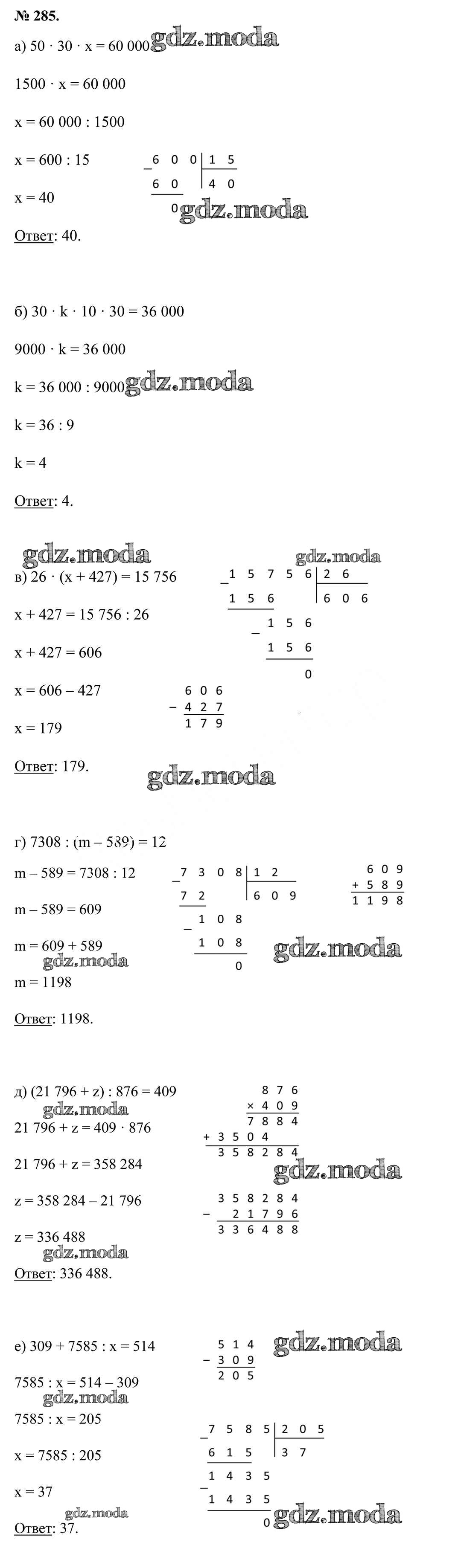 ОТВЕТ на задание № 285 Учебник по Математике 5 класс Герасимов