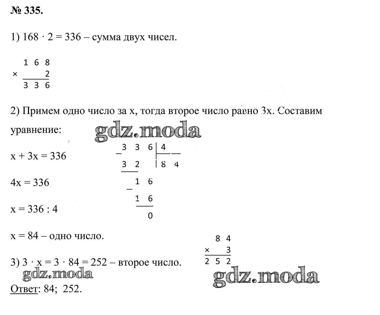 ОТВЕТ на задание № 335 Учебник по Математике 5 класс Герасимов