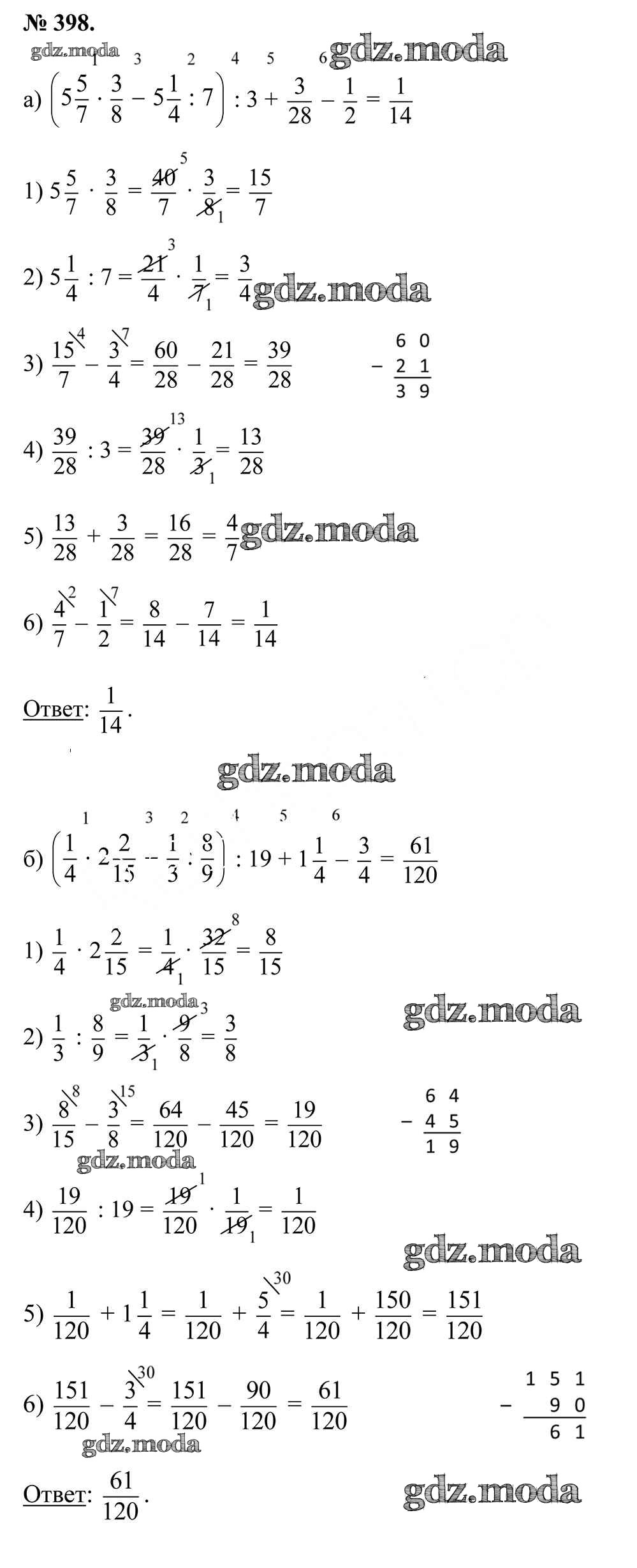ОТВЕТ на задание № 398 Учебник по Математике 5 класс Герасимов
