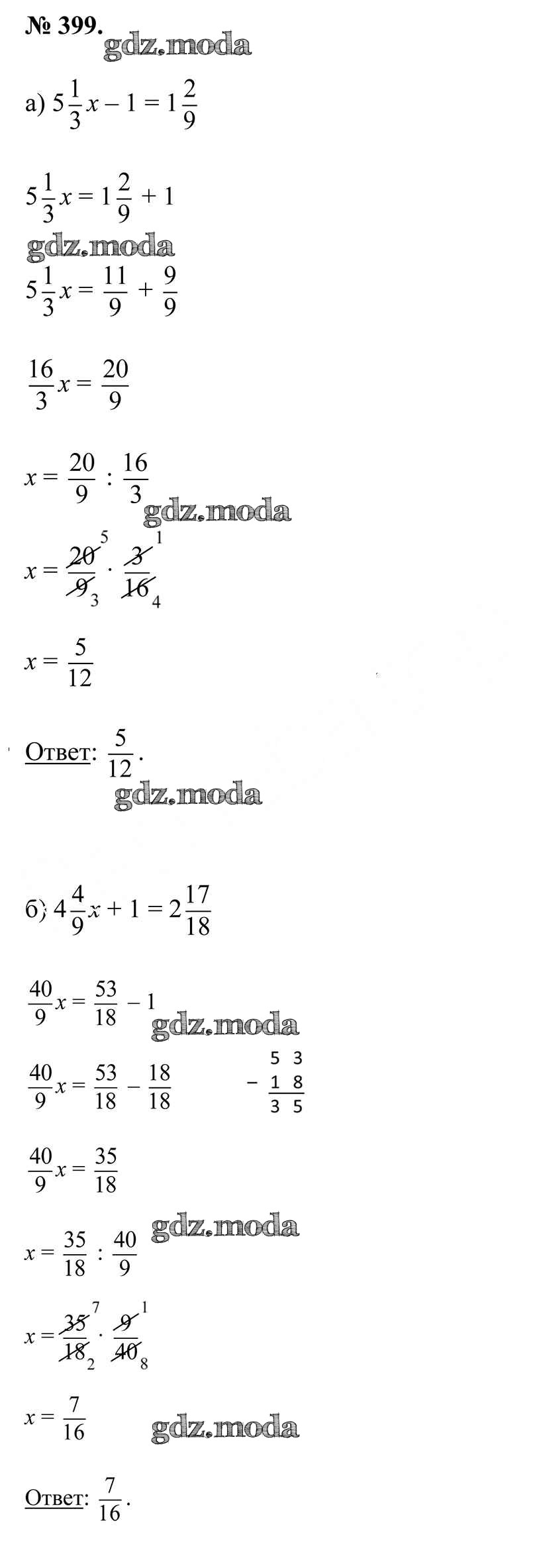 ОТВЕТ на задание № 399 Учебник по Математике 5 класс Герасимов
