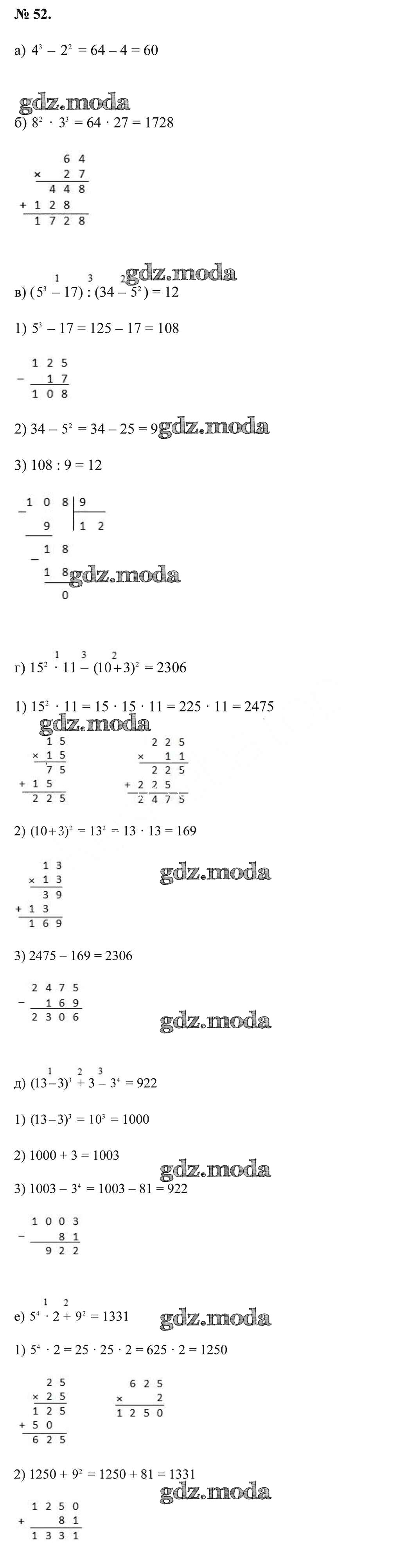 ОТВЕТ на задание № 52 Учебник по Математике 5 класс Герасимов