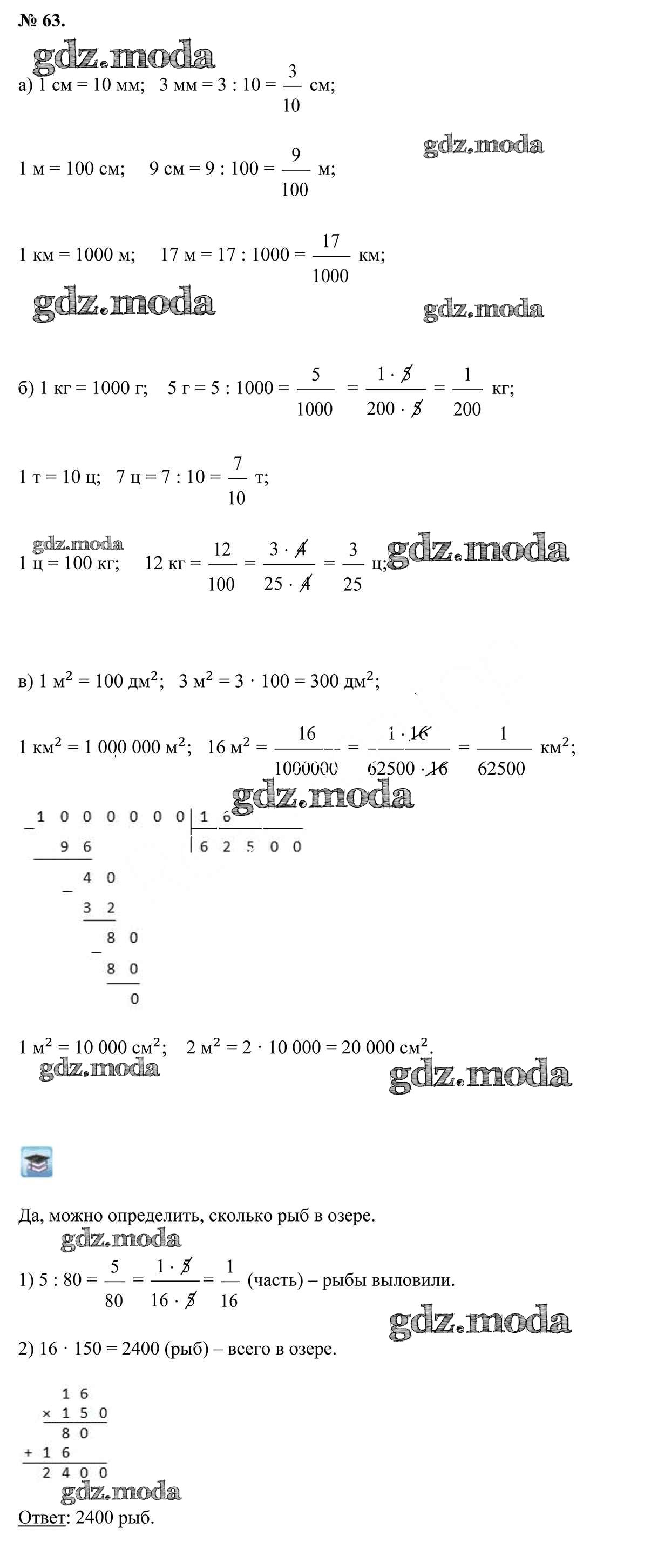 ОТВЕТ на задание № 63 Учебник по Математике 5 класс Герасимов