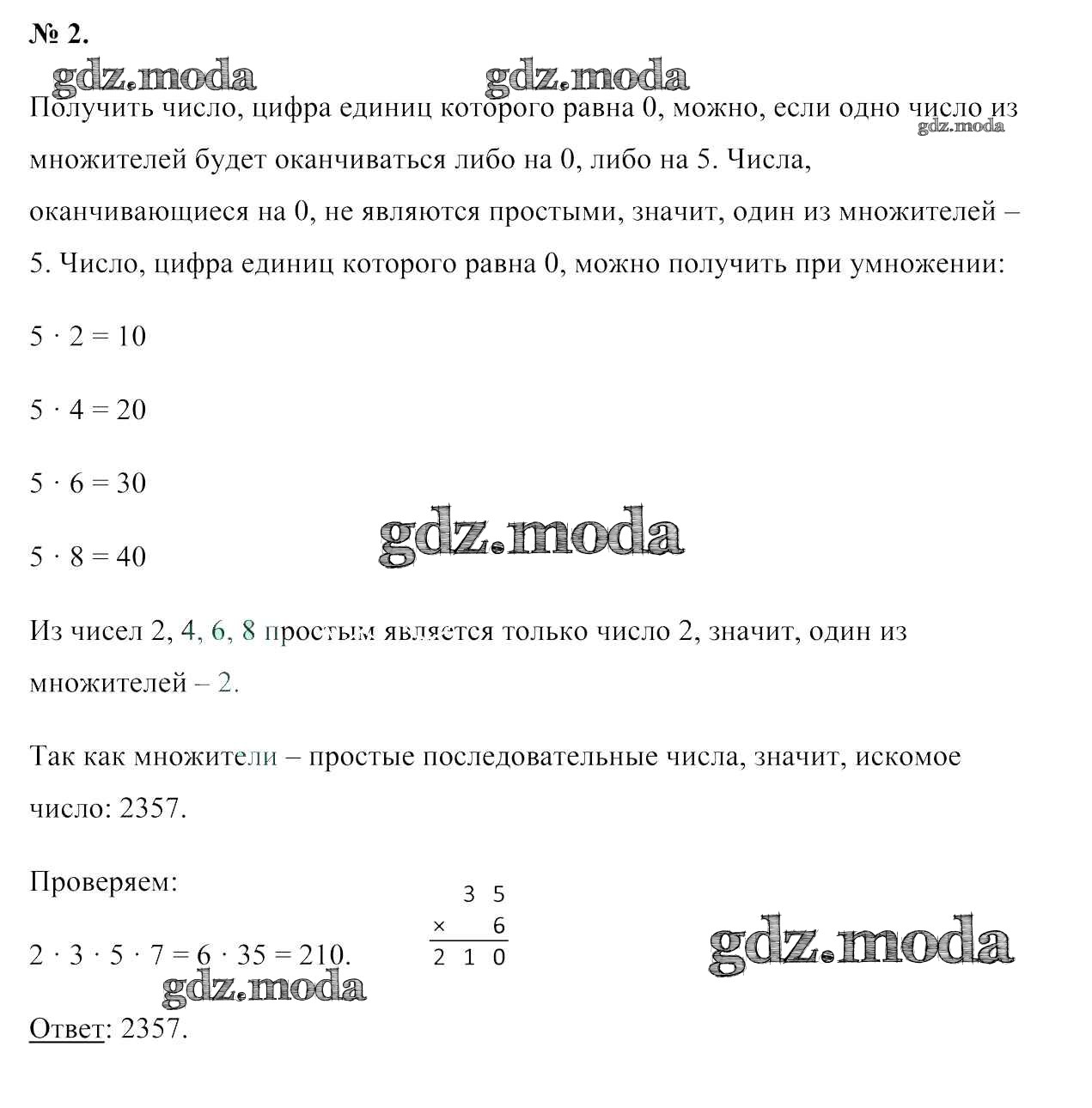 ОТВЕТ на задание № 2 Учебник по Математике 5 класс Герасимов