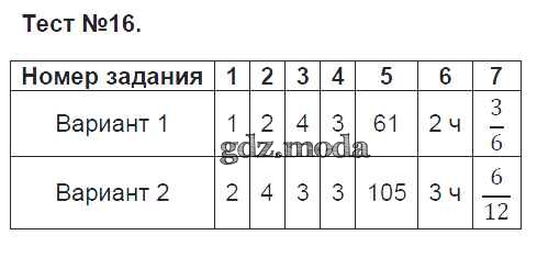 ОТВЕТ на задание № Тест №16 Контрольно-измерительные материалы (КИМ) по Математике 5 класс Глазков