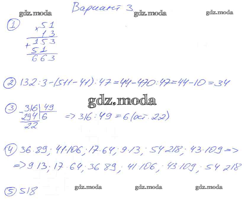 ГДЗ решение к заданию № 3 Математика 5 класс контрольные и самостоятельные работы Попов М.А. (к уч. Виленкина Н.Я.) Экзамен 2016 ФГОС бесплатно на гдз.мода!