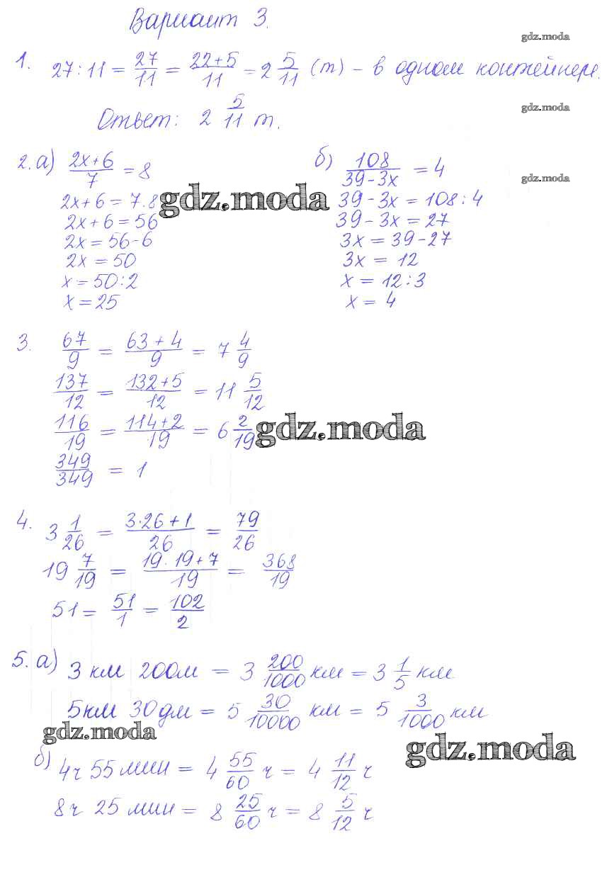 ГДЗ решение к заданию № 3 Математика 5 класс контрольные и самостоятельные работы Журавлев С.Г. Экзамен 2015 ФГОС бесплатно на гдз.мода!