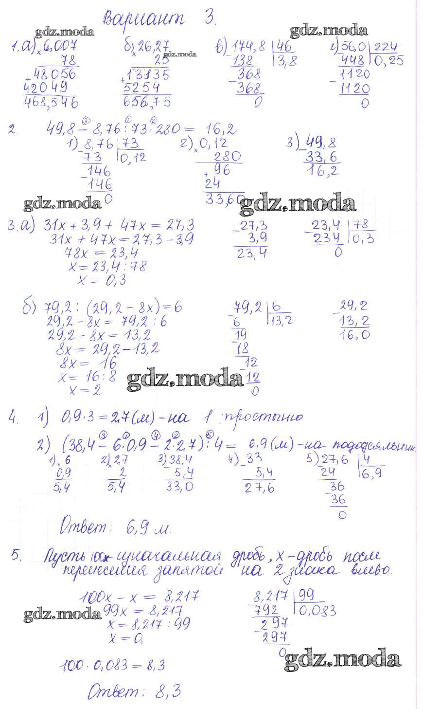 ОТВЕТ на задание № 3 Контрольные и самостоятельные работы по Математике 5 класс Журавлев УМК