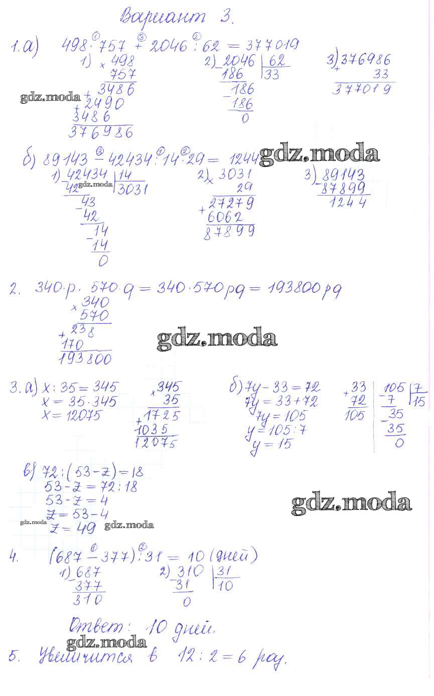 ГДЗ решение к заданию № 3 Математика 5 класс контрольные и самостоятельные работы Журавлев С.Г. Экзамен 2015 ФГОС бесплатно на гдз.мода!