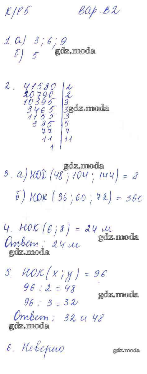 ГДЗ решение к заданию № 6 Математика 5 класс контрольные работы Ерина Т.М. ( к уч. Никольского С.М.) Экзамен 2020 ФГОС бесплатно на гдз.мода!