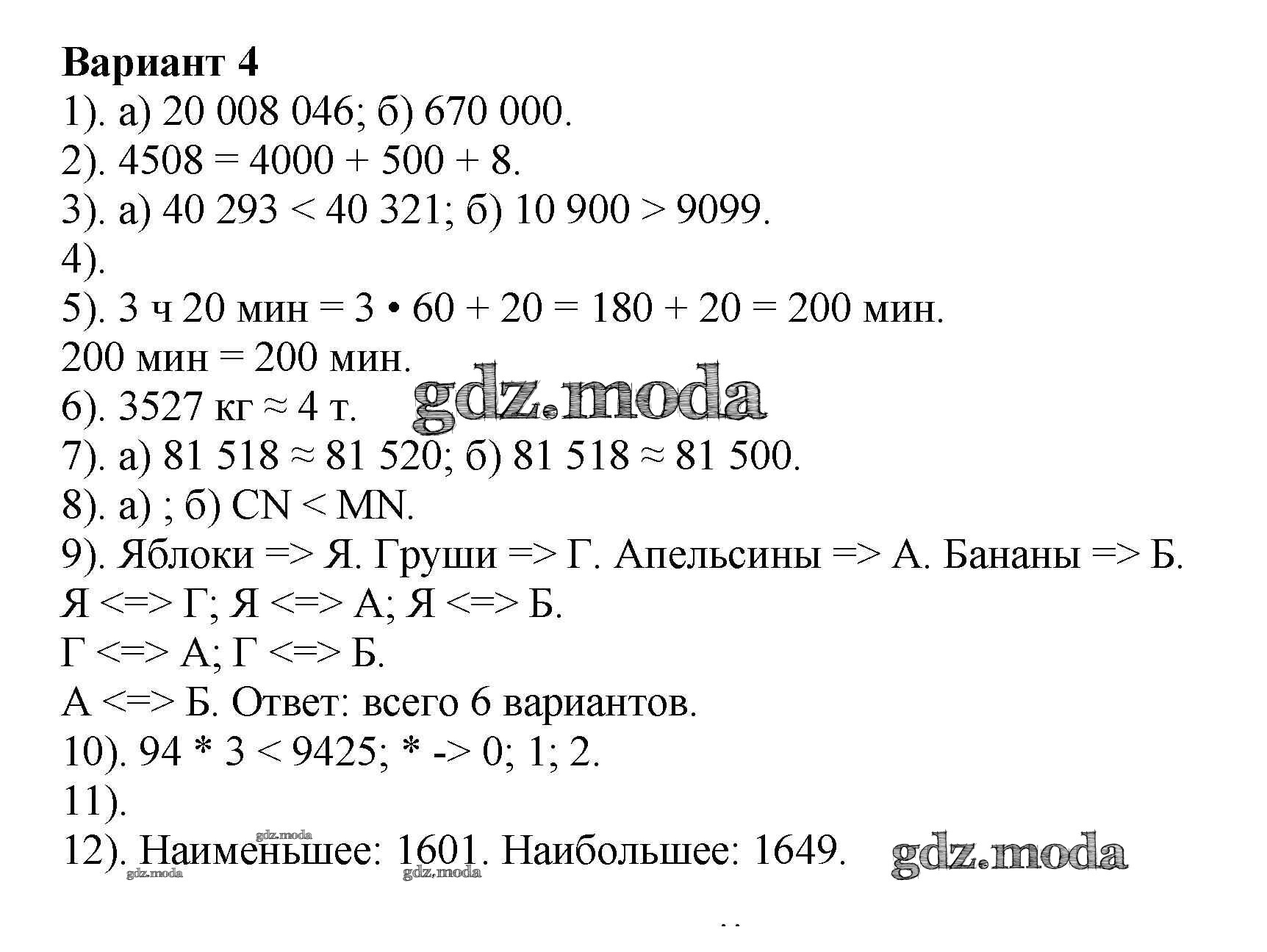ГДЗ решение к заданию № вариант-4 Математика 5 класс контрольные работы Кузнецова Л.В. Просвещение 2018 ФГОС бесплатно на гдз.мода!