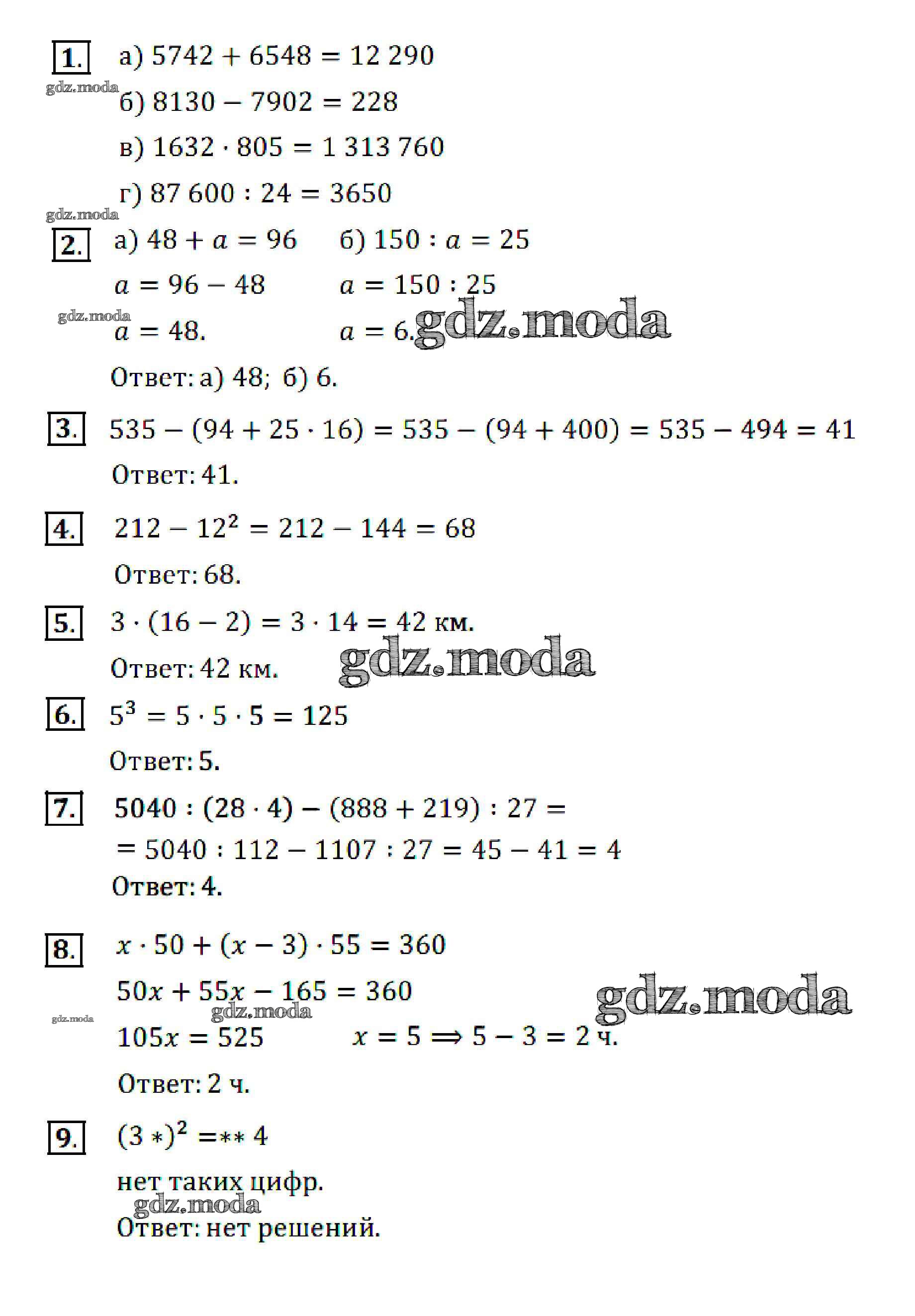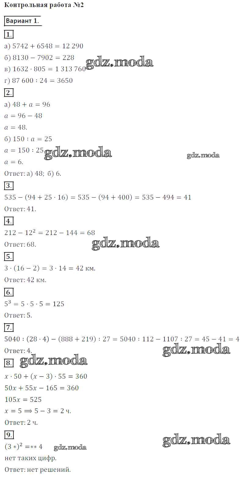 ГДЗ решение к заданию № вариант-1 Математика 5 класс контрольные работы Кузнецова Л.В. Просвещение 2018 ФГОС бесплатно на гдз.мода!