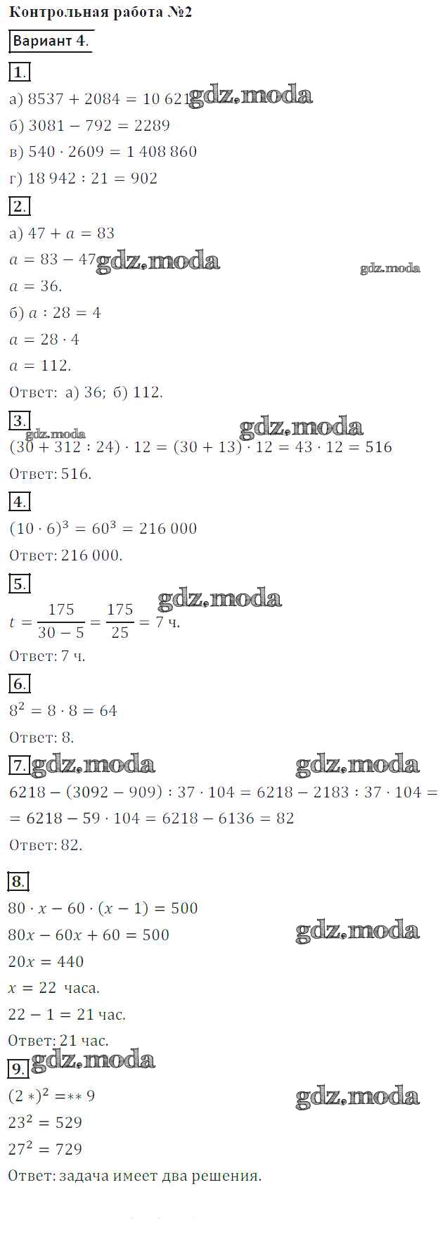 ГДЗ решение к заданию № вариант-4 Математика 5 класс контрольные работы Кузнецова Л.В. Просвещение 2018 ФГОС бесплатно на гдз.мода!