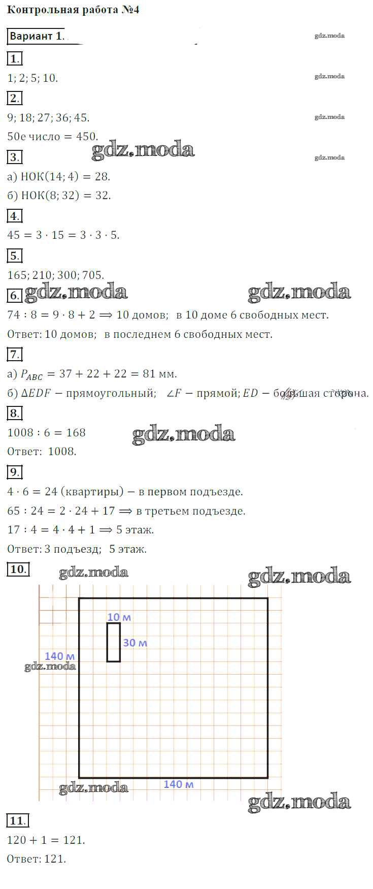 ОТВЕТ на задание № вариант-1 Контрольные работы по Математике 5 класс Кузнецова