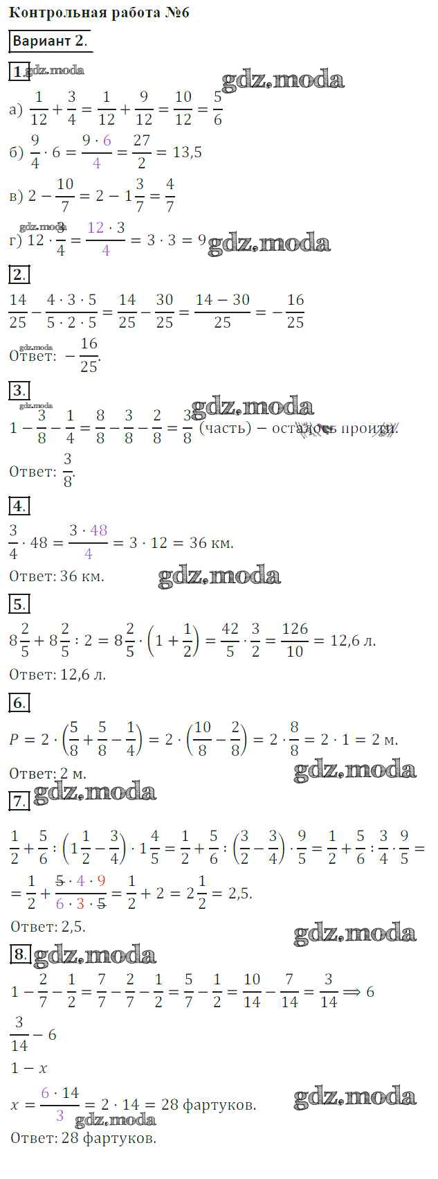 ОТВЕТ на задание № вариант-2 Контрольные работы по Математике 5 класс Кузнецова