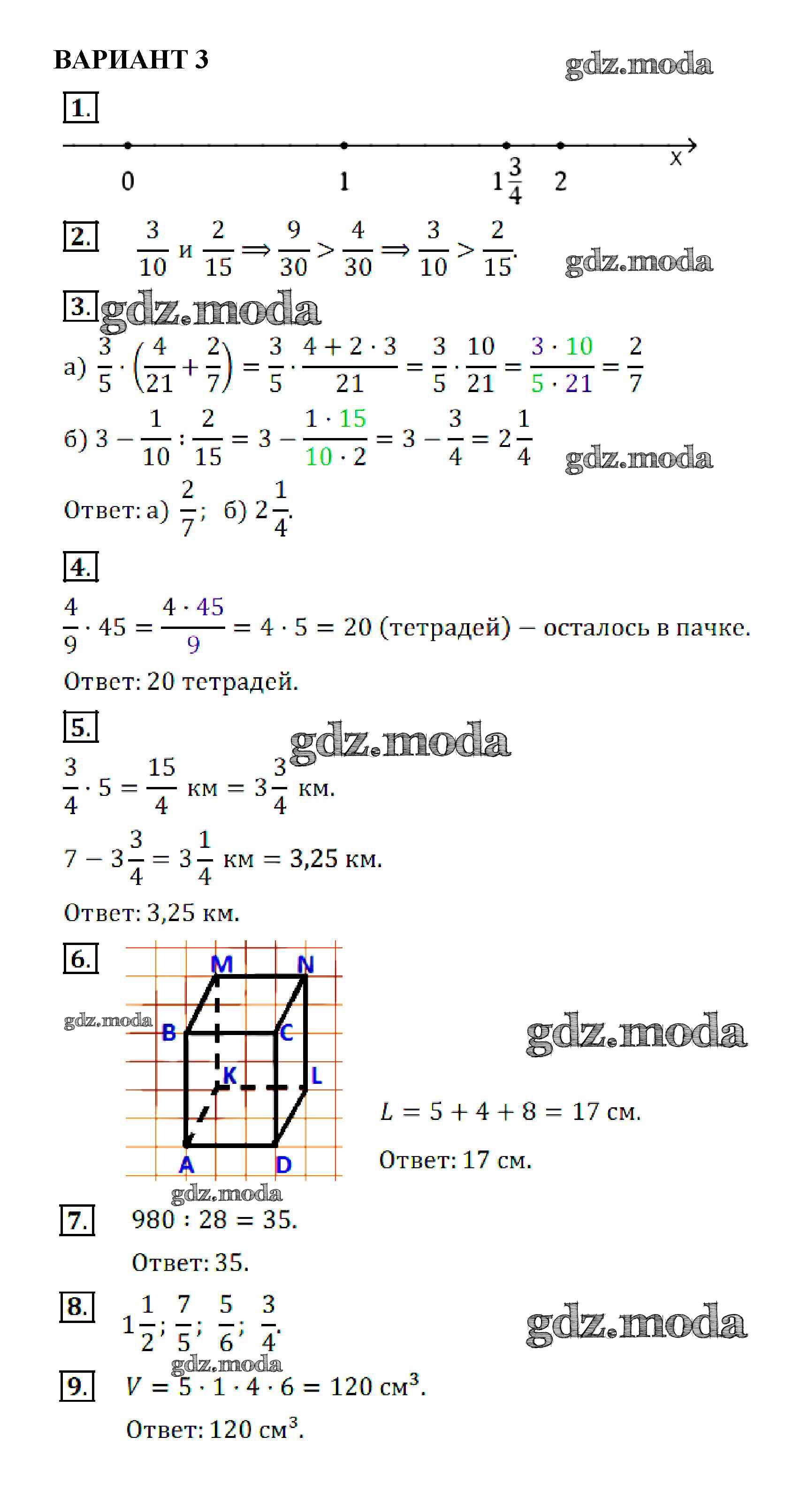 ГДЗ решение к заданию № вариант-3 Математика 5 класс контрольные работы Кузнецова Л.В. Просвещение 2018 ФГОС бесплатно на гдз.мода!