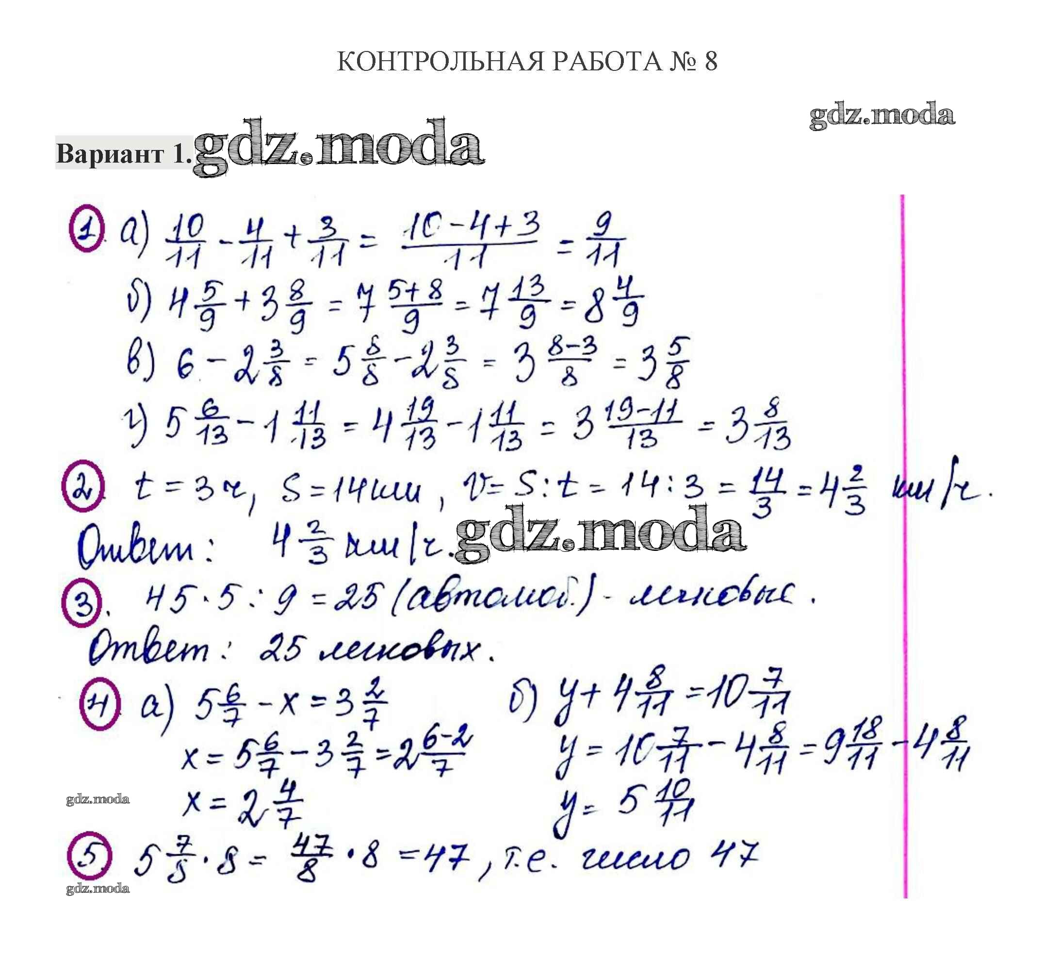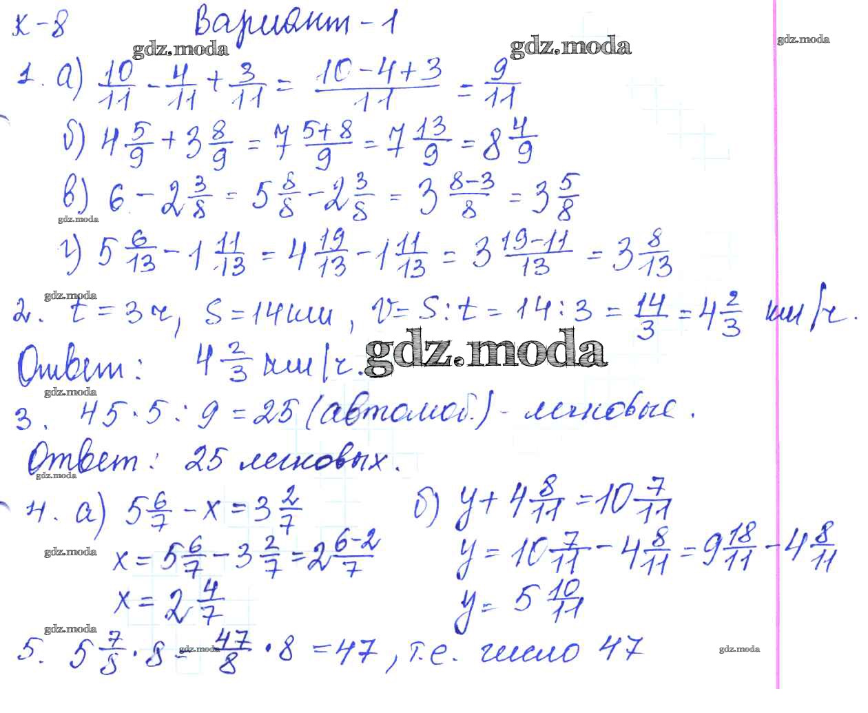 ГДЗ решение к заданию № 1 Математика 5 класс контрольные работы Жохов В.И. Мнемозина 2012 ФГОС бесплатно на гдз.мода!