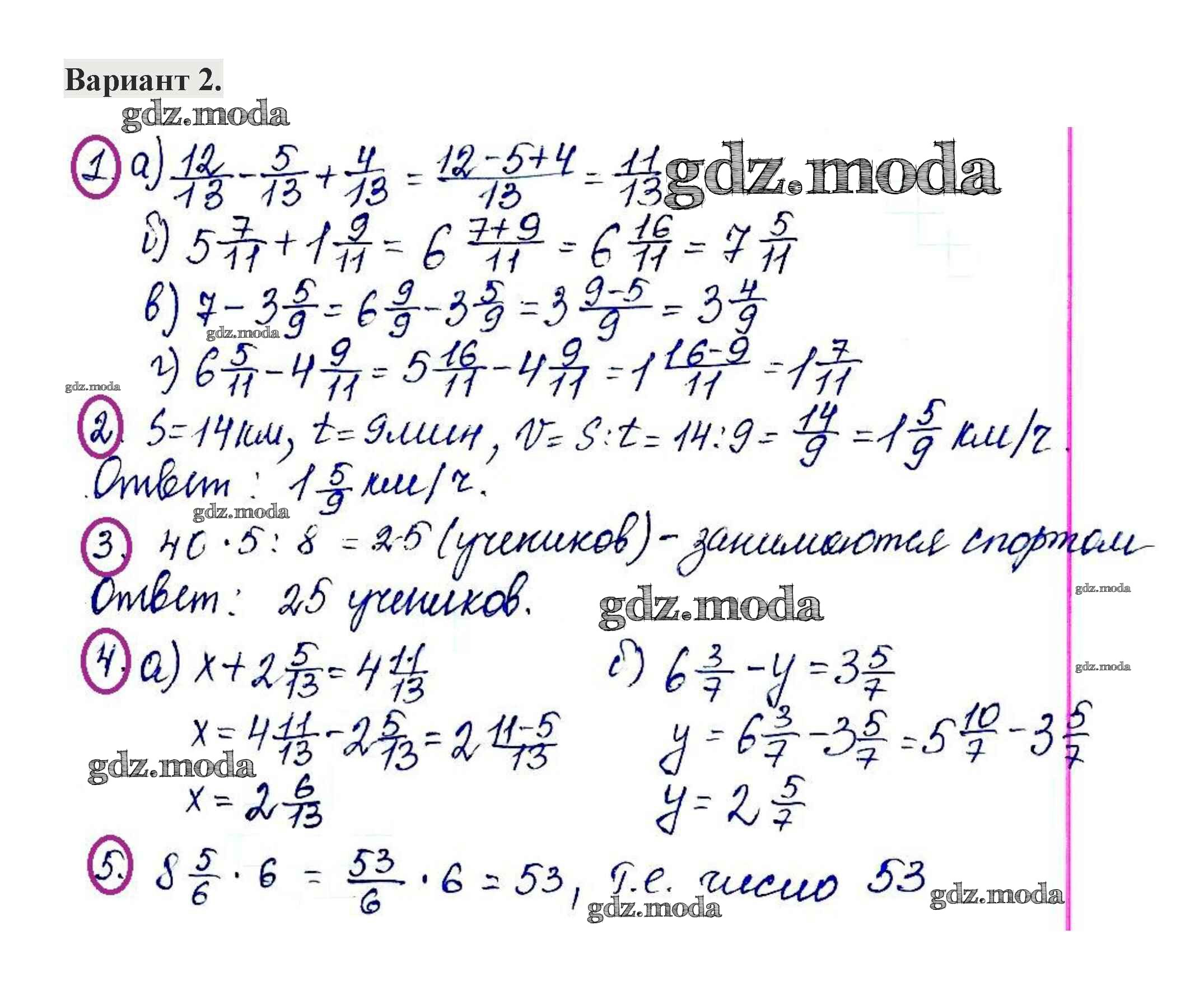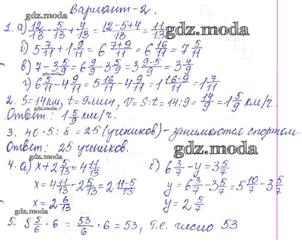 ГДЗ решение к заданию № 2 Математика 5 класс контрольные работы Жохов В.И. Мнемозина 2012 ФГОС бесплатно на гдз.мода!