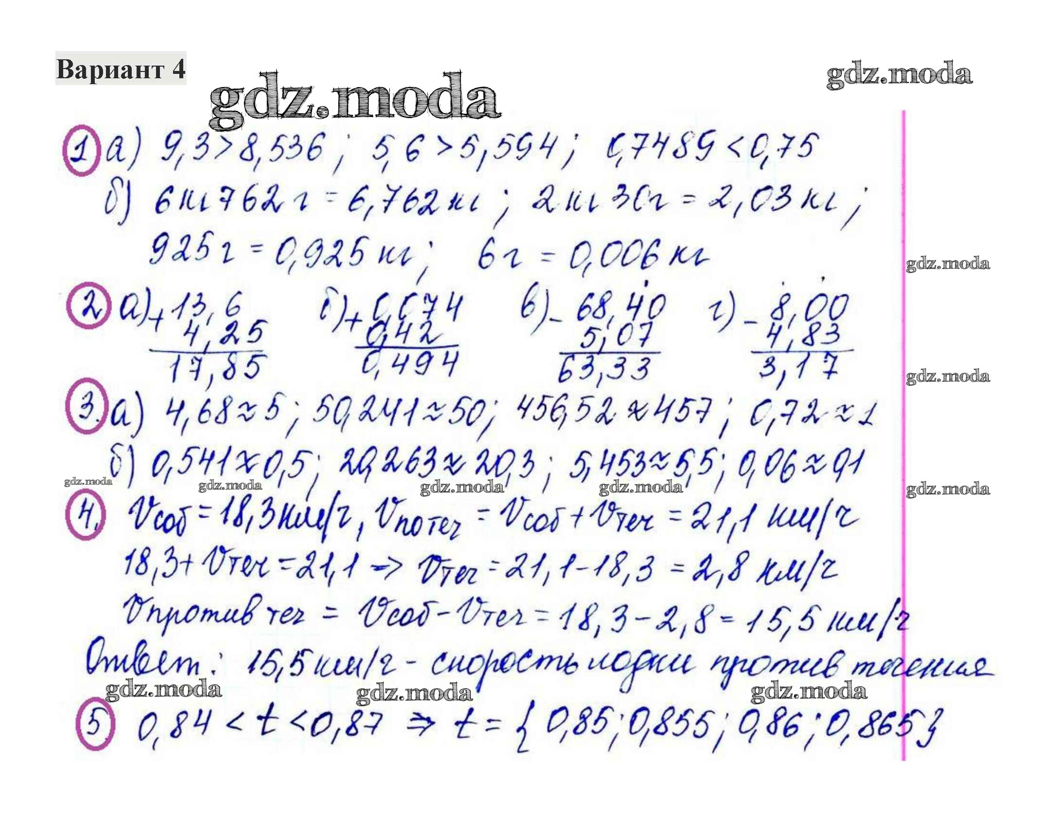 ОТВЕТ на задание № 4 Контрольные работы по Математике 5 класс Жохов