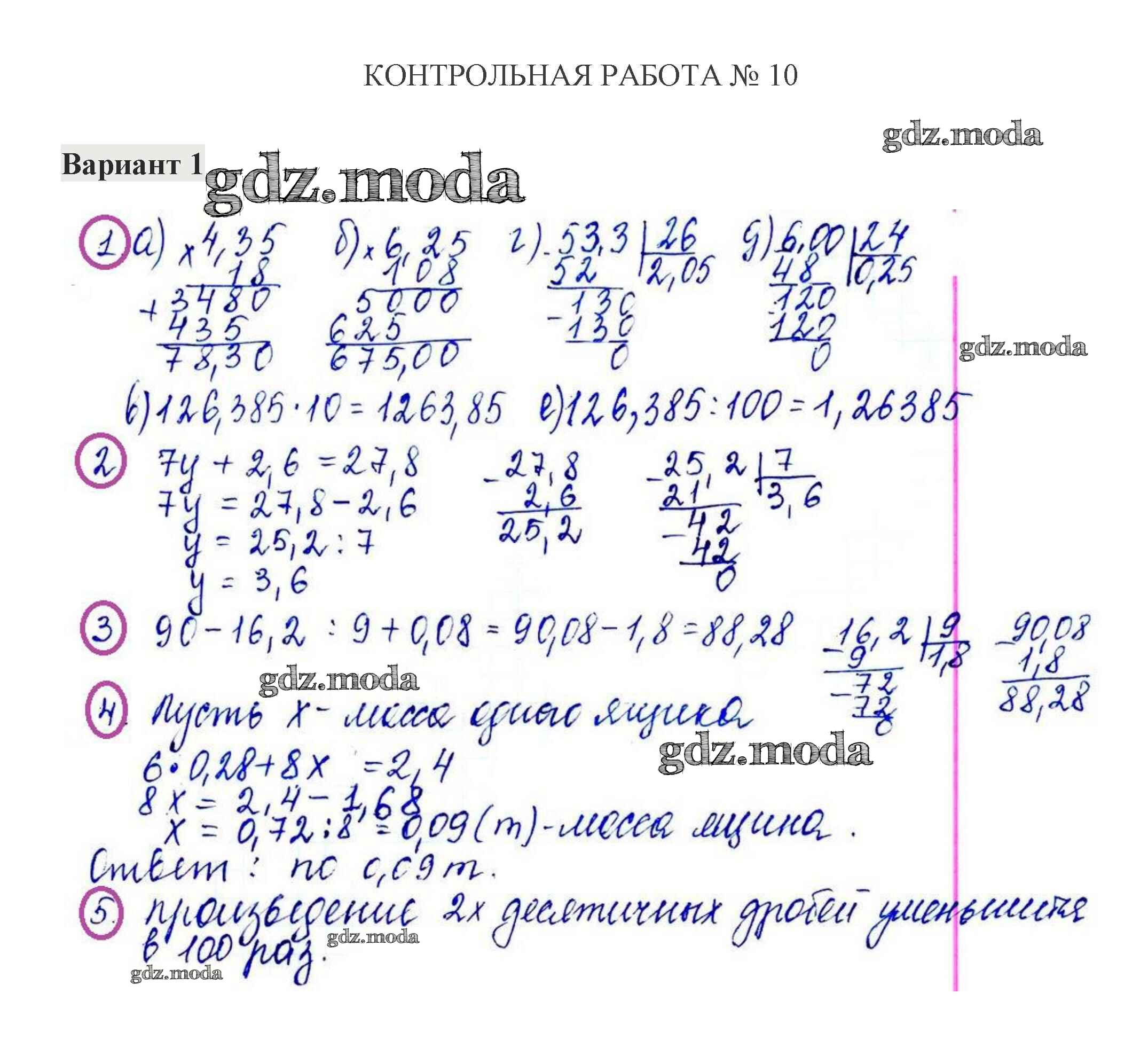 ГДЗ решение к заданию № 1 Математика 5 класс контрольные работы Жохов В.И. Мнемозина 2012 ФГОС бесплатно на гдз.мода!