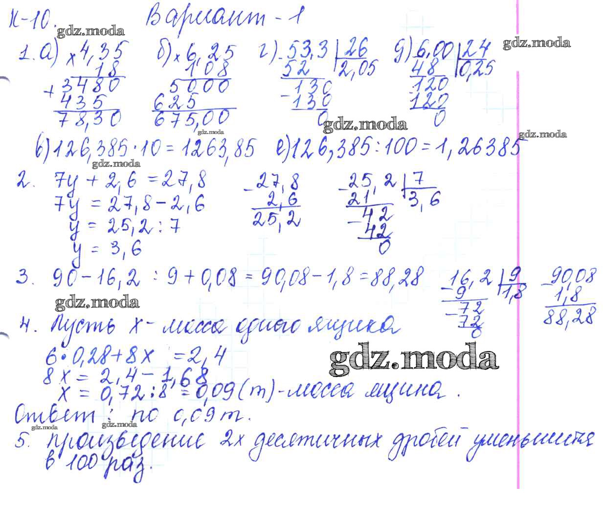 ОТВЕТ на задание № 1 Контрольные работы по Математике 5 класс Жохов
